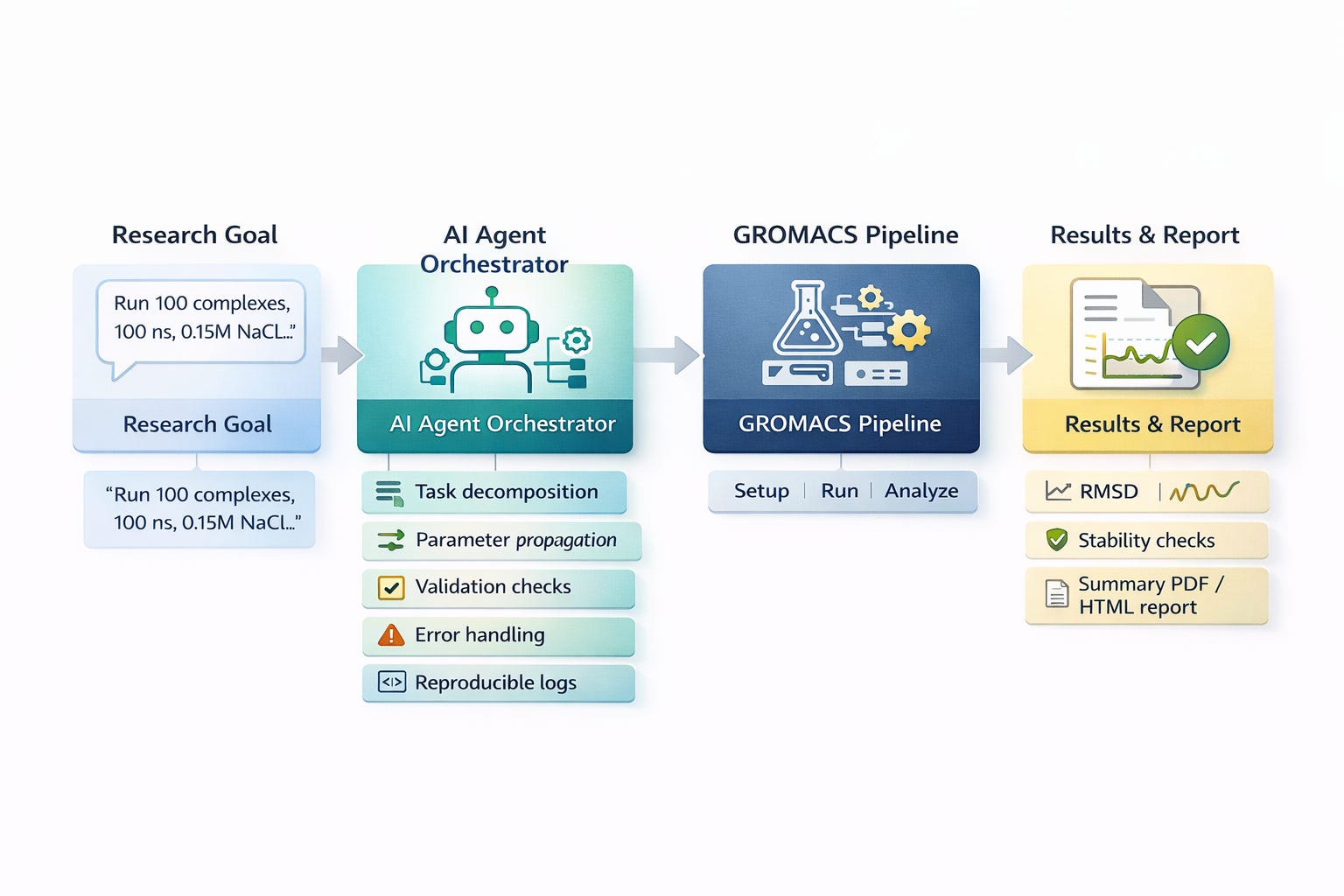 The bottleneck shifts from technical expertise to scientific question formulation. Smaller labs without computational specialists gain access to workflows previously reserved for expert practitioners. GROMACS pipelines requiring weeks of manual iteration become accessible through automated systems designed for reliability and reproducibility at scale.