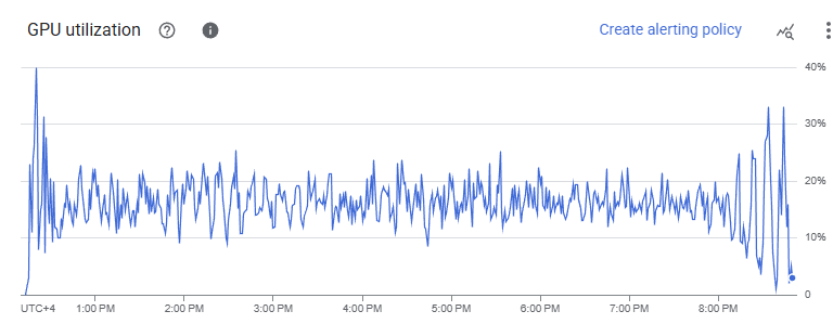Cloud Monitoring dashboard showing suspiciously low GPU utilization