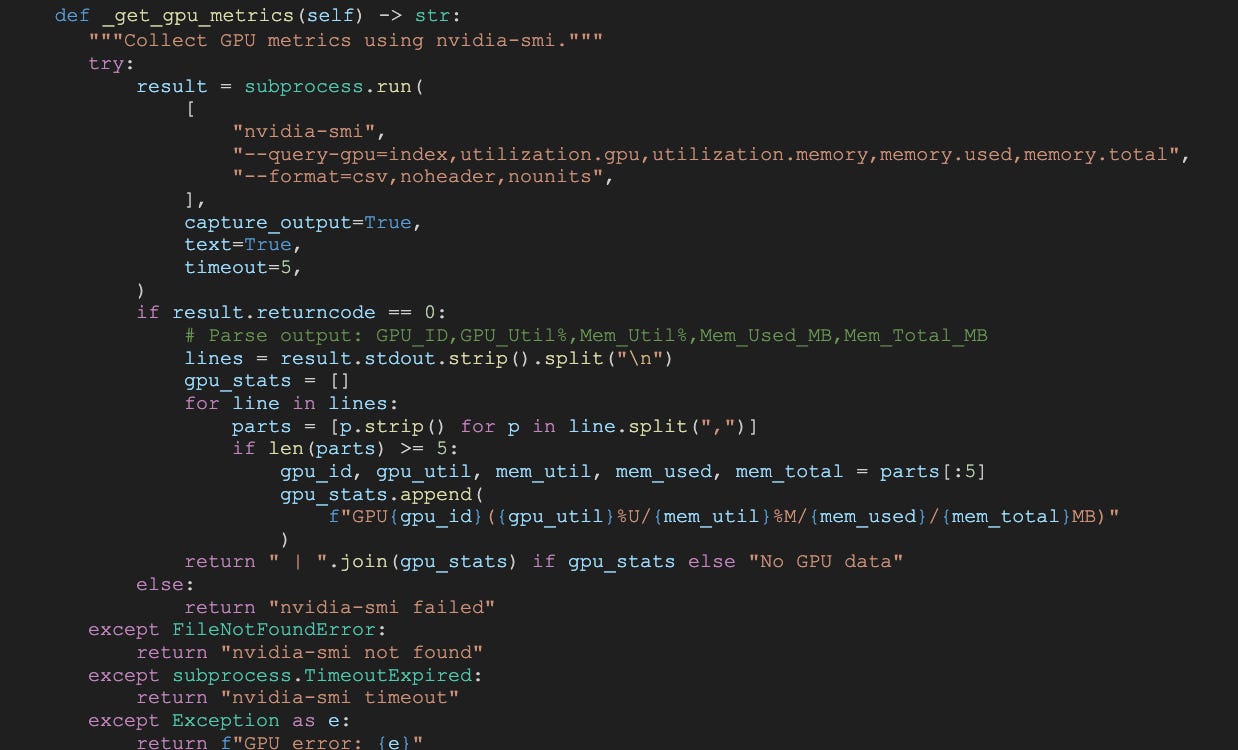 Code snippet - nvidia-smi monitoring script in collapsible section.
