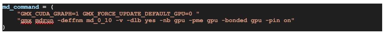 Code snippet - GROMACS mdrun command with GPU flags in collapsible section.